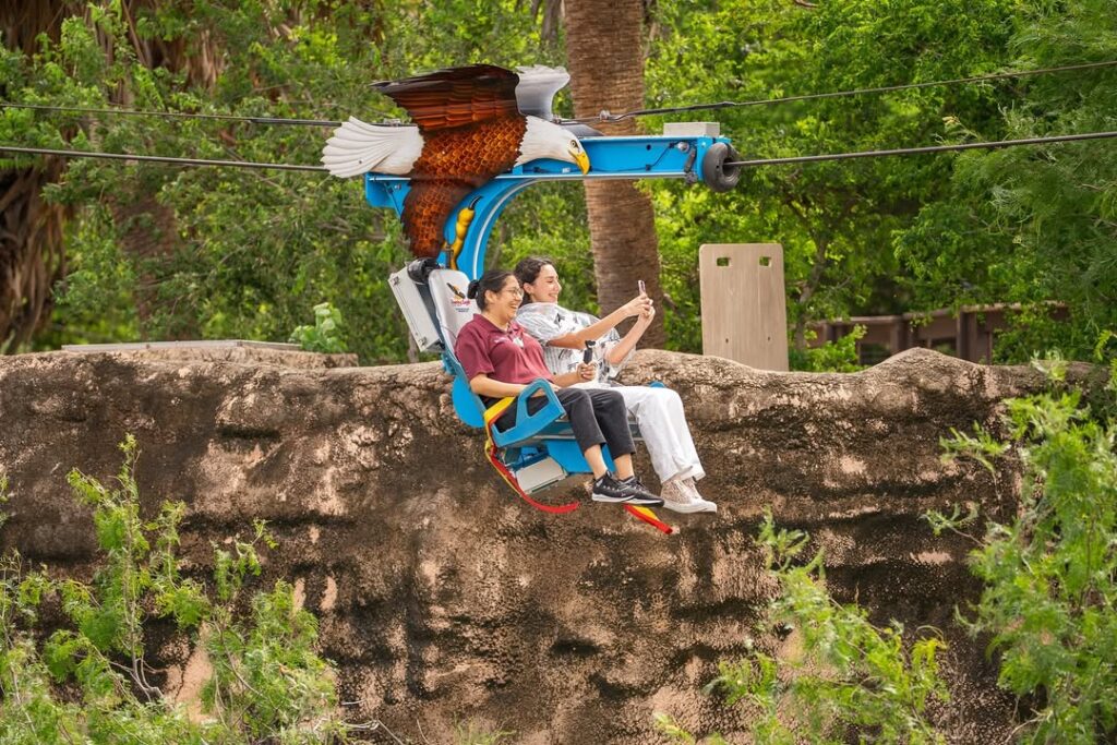 La Soaring Eagle Zipline en Gladys Porter Zoo representa un nuevo nivel de aventura. Es ideal para quienes buscan planes diferentes sin salir del entorno natural del zoológico.
