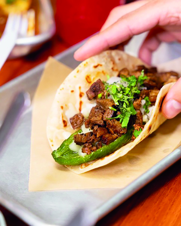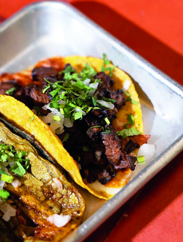 - Tacos de harina o maíz con fajita, cebolla, cilantro y un toque de limón.